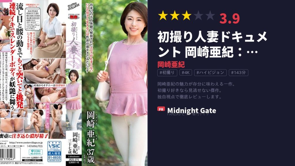 ※この記事にはアフィリエイトリンクが含まれています(PR) 初撮り人妻ドキュメント 岡崎亜紀:隠された欲望のドロドロとした本音を再現 深夜のテレビ局に現れた、どこにでもいるようなおっとりとした奥様。普段は家庭のために端役を演じているだけかもし... -